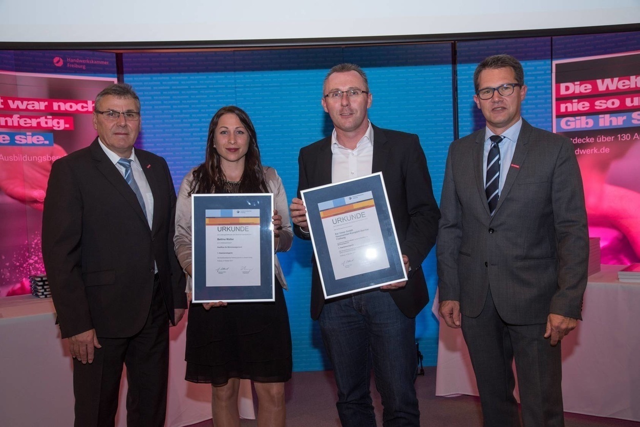 In der Zeit von 01.01.2009 bis 31.12.2009 konnten wir 8 neue Stellen schaffen und beschäftigen heute 19 Mitarbeiter in Voll- bzw. Teilzeit sowie 24 Aushilfen. Diese Leistung wurde nun honoriert. Der Präsident der Handwerkskammer Freiburg, Paul Baier, hielt die Laudatio und überreichte den Preis.