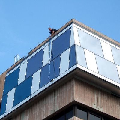 Durch unser spezielles Reinigungssystem werden Glasfassaden mühelos gereinigt.